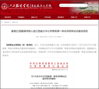 1.学校入选江西省大中小学思政课一体化共同体试点建设项目