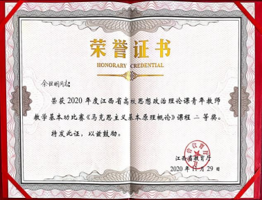 11月28日,由江西省教育厅主办的2020年度江西省高校思想政治理论课青年教师教学基本功比赛在东华理工大学举行,MILE米乐官方网站选派了4位青年教师参赛,余坦明荣获《马克思主义基本原理概论》课程组二等奖、张龙龙获《中国近现代史纲要》课程组三等奖。