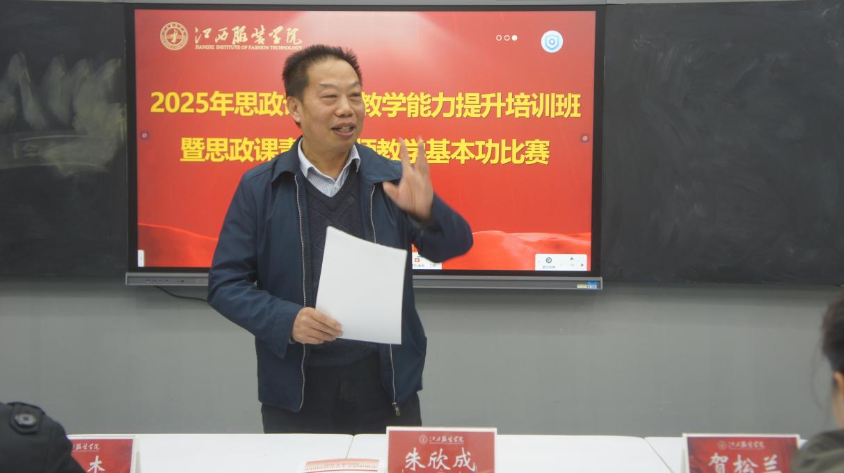 朱欣成教授在培训指导中强调,“专题选择要‘准’,需紧扣课程要求,对接学生需求;内容把握要‘实’,需深挖理论精髓,融入实践案例;教学设计要‘巧’,需善用情景创设,激活课堂氛围;语言表达要‘活’,需摒弃空洞说教,多用家常话语。比赛有技巧,但育人无捷径——理论功底是‘压舱石’,要常学常新强根基;学情把握是‘导航仪’,要知生懂生明方向;情感投入是‘催化剂’,要以情动人传温度。希望大家以此次活动为契机,把‘赛场上的标准’转化为‘课堂上的常态’,让思政课既有理论高度,又有情感温度,更有实践深度,真正成为学生喜爱、终身受益的‘金课’。”