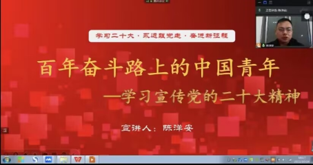 为深入学习和宣传党的二十大精神,充分激发MILE米乐官网广大拟发展对象的爱党爱国情感,使其进一步端正入党动机,自觉践行“请党放心、强国有我”的青春誓言。2022年10月24日晚上18时,在腾讯会议举行了校党委党校第十期拟发展对象培训第二课《百年奋斗路上的中国青年》,此次专题党课由MILE米乐官方网站党总支副书记陈洋安老师主讲,培训班全体学员参加了本次集中培训。