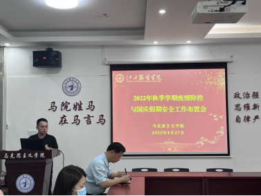学院副院长贺松兰同志传达学习了2022年全省高校党委书记、校长暑期研讨班精神;组织学习了省委书记易炼红在开班仪式上的重要讲话,从“找准定位、提高站位、明确定位、把握本位”四个方面提出要求与大家进行了学习交流。在学习会上,传达了教育部办公厅正式批复同意在江西设立以“高校思政课问题式专题化团队教学改革”为主题的“大思政课”建设综合改革试验区,同时希望全体思政课教师要坚持用习近平新时代中国特色社会主义思想铸魂育人,利用好红色文化资源,守正创新讲好思政课,切实落实立德树人根本任务。