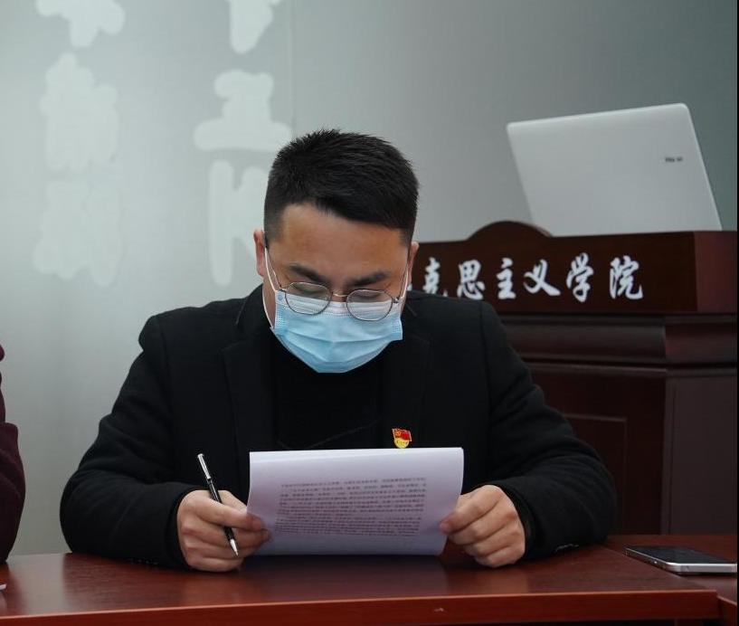 活动最后,与会党员通过在线上面向鲜红的党旗重温入党誓词,进行庄严宣誓;支部正式党员讨论了姜珊同志列为党员发展对象事宜,与会正式党员一致同意推荐其为党员发展对象,并确定陈洋安、王新平两位同志为其入党介绍人。大家纷纷表示,在以后的学习与教学中会更加坚定自觉地牢记初心使命,助力发挥思政课在立德树人中的关键作用,多角度讲好思政课,在教学中引导大学生充分认识当前“动态清零”的抗疫方针,感受中国特色社会主义制度优越性,增强我们同心抗疫的强大合力,坚定我们一定能够战胜疫情的强大信心。
