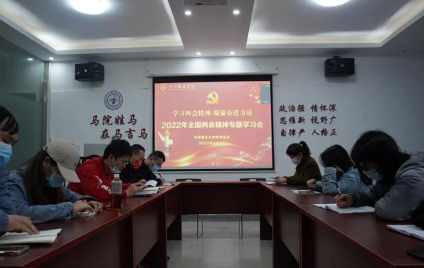 在学习会开始前,组织大家收看2022年全国两会闭幕会视频;随后,学院副院长张龙龙同志组织学习习近平总书记“两会”期间的重要讲话精神,在会上,对两会召开情况进行了解读,2022年是进入全面建设社会主义现代化国家、向第二个百年奋斗目标进军新征程的重要一年,全国两会立足在这样新的关键历史节点,具有重大而深远的意义。并对习近平总书记在两会期间强调的“五个必由之路”、“五个有利条件”等讲话精神进行了传达。