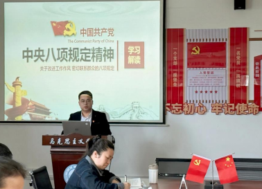 随后,学院党总支副书记陈洋安以《学习中央八项规定精神,扎实推进作风建设》为题作专题辅导报告。陈洋安从“背景介绍、主要内容、政策图解、数字解读、关键词”五个方面,全面解读了《关于改进工作作风,密切联系群众的八项规定》,授课过程中结合案例与数据,有效提升了授课效果。同时,陈洋安还从“开展时间、目标要求、工作安排、组织领导”四个方面,讲解了如何开展深入贯彻中央八项规定精神学习教育,帮助大家进一步理解学习教育的重要意义。