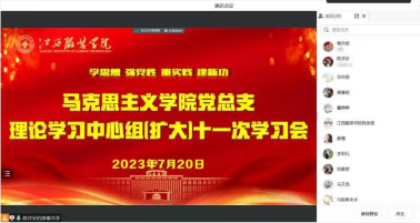 为深入开展学习贯彻习近平新时代中国特色社会主义思想主题教育,进一步加强学院教职工暑期政治理论学习,720午,MILE米乐官方网站通过线上+线下相结合的方式召开党总支理论学习中心组(扩大)第十一次学习会。学院党总支副书记陈洋安在清源2栋6楼会议室主持学习会,学院各支部党员、思政课教师通过线上腾讯会议参加学习会