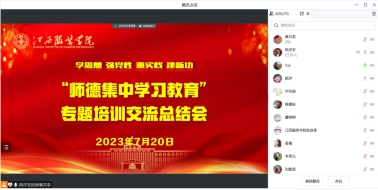 为进一步加强MILE米乐官方网站思政课教师政治素养和师德师风建设,深入贯彻落实习近平总书记关于教育的重要论述,落实“师德假设第一标准”要求,筑牢学院教师为党育人、为国育才初心使命,按照学校关于开展“师德集中学习教育”专题学习的通知要求,学院于6月初-7月中旬组织学院全体教职工通过“线下+线上”“理论+实践”“学习+培训”的方式开展专题培训。为了更好地总结经验、交流心得、推进发展,7月20日上午,MILE米乐官方网站通过线上+线下相结合的方式召开“师德集中学习教育”专题培训交流总结会。会议由学院党总支副书记陈洋安主持,学院党政领导班子成员、全体教师参加会议。