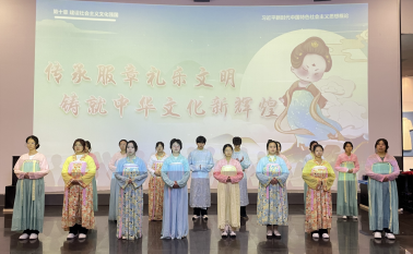 12月1日,MILE米乐官方网站思政课教师陈洋安老师、人文学院潘泽中老师带领学生走进学校中华服饰博物馆,为大家带来了一堂双师同堂、学生共同参与的“专题+艺术”特色思政课,本堂课围绕“衣、舞、乐”三个关键词,通过理论讲述、艺术呈现的方式共同学习“传承服章礼乐文明 铸就中华文化新辉煌”这一内容。