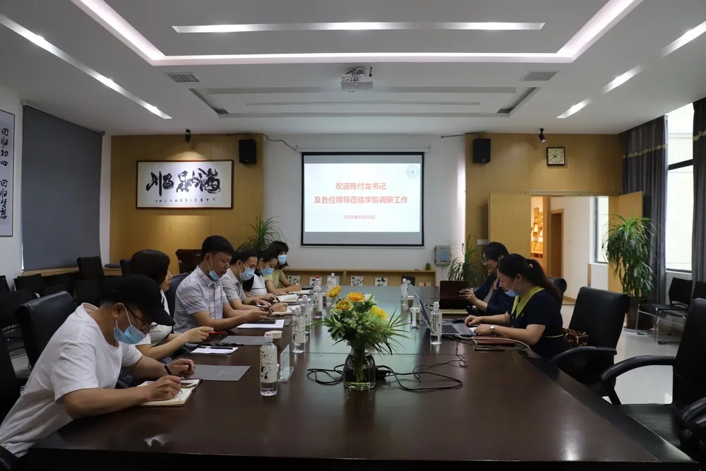 在调研过程中,陈付龙书记对基层党建和思想政治工作提出了四点要求:一是树牢“四个意识”,以实际行动做到“两个维护”。他指出,全体党员干部要认真学习贯彻习近平新时代中国特色社会主义思想和党的十九大、十九届四中全会和2020年全国两会精神,自觉用党的创新理论武装头脑,做到学思用贯通、知信行统一,将“两个维护”体现在实际行动中。二是突出政治标准和政治功能,扎实推进党的组织建设。他指出,各基层党组织要认真贯彻新时代党的组织路线,以党的政治建设为统领,牢固树立大抓基层鲜明导向,认真落实基层党建的主体责任,落实“三会一课”、主题党日、民主评议党员等制度,全面增强基层党组织政治功能和组织力。持续抓好党建与思政品牌建设,选树“标杆学院”“样板党支部”等,不断提升新形势下党建工作水平和质量。三是认真履行意识形态工作责任,推动思政工作守正创新。他强调,要牢牢把握意识形态领域的领导权和话语权,准确把握意识形态领域新形势对宣传思想工作带来的新挑战,持续抓好意识形态阵地管理,牢牢掌握宣传舆论主动权,守正创新做好思想政治工作。四是加强师德师风建设。他强调:“上好课就是最好的师德建设”,要求全体党员要不断加强党性修养,把党性锤炼落实到业务工作当中,加强团队建设,营造风清气正的校园环境。