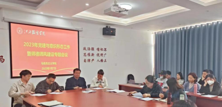 会上,学院党总支副书记陈洋安传达了全省教育系统工作会议、学校2023年春季学期师生思想安全稳定工作暨平安校园建设工作研判会议精神,通报了近期某高校教师因发表不当言论引起舆情事件以及违反师德师风警示教育典型案例,共同学习了《新时代高校教师职业行为十项准则》。