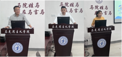 在评审环节,肖杰、吴雄生、贺松兰等四位项目申报负责人相继依次作了PPT展示,主要围绕工作室团队基本情况、教学科研成果、思政课教学特色以及育人成效等方面。他们结合教学课程的特点推进思政课教学改革创新过程中取得经验、成果和问题进行讲解,并回答专家评审的提问。