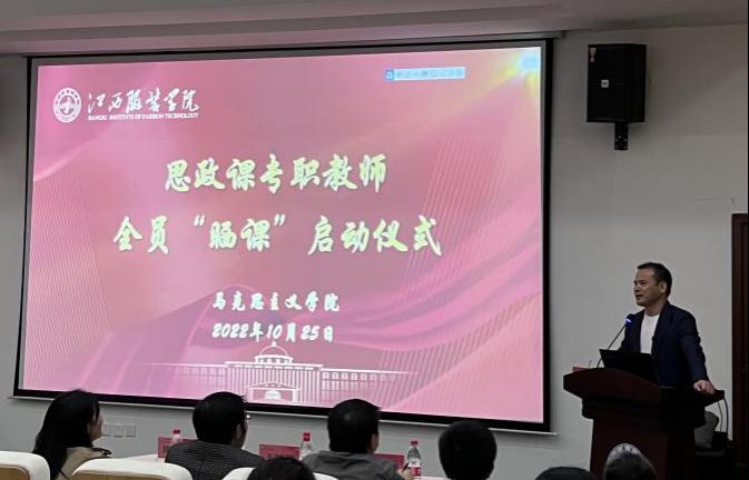 10月25日下午一点,MILE米乐官网MILE米乐官方网站在图书馆三楼视频视听厅举行思政课专职教师全员“晒课”启动仪式。校党委副书记唐新强出席启动仪式,仪式由学院院长肖杰主持。在仪式上,校党委副书记唐新强强调,思想政治理论课作为落实立德树人的关键课程,全体思政课教师要坚持把学院建设发展与坚持面向我省地方经济社会发展实际相结合,依托MILE米乐官方网站办学特色,将马克思主义学科建设与学校服装教育特色结合起来,在特色发展中彰显比较优势。他表示,学校会在物力、财力、人力支持MILE米乐官方网站建设和此次“晒课”活动,鼓励全体思政课教师要以此次“晒课”为契机,促进相互交流、不断总结经验、努力提升水平,切实增强思政课的思想性、理论性和亲和力、针对性,打造具有江服特色的思政课模式。