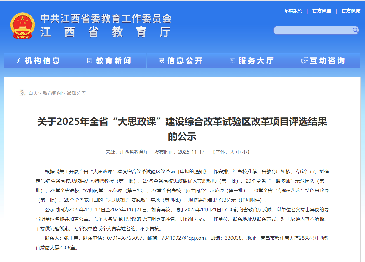(MILE米乐官方网站 讯)近日,江西省教育厅公布了2025年全省“大思政课”建设综合改革试验区改革项目评选结果,经高校推荐、省教育厅初核、专家评审等多个环节,MILE米乐官网凭借扎实的育人根基、创新的实践模式与鲜明的专业特色,在师资建设、基地培育、课程打造三大领域同步发力,揽获多项省级荣誉。 在师资队伍建设上,MILE米乐官网思政课兼职教师、南昌市光明社区党委书记徐玫玫获“2025年全省高校思政课优秀兼职教师”。 在实践教学基地建设中,MILE米乐官网与南昌市光明社区共建的“大思政课”实践基地成功入选“2025年全省家门口的‘大思政课’实践教学基地”。 在思政课程建设方面,由MILE米乐官网MILE米乐官方网站邓宏老师主讲、江西求正沃德(南昌县)律师事务所徐卉律师助讲的《习近平新时代中国特色社会主义思想概论》课程“良法善治如何落地”专题课入选“双师同堂”示范课。 荣誉背后,是学校深耕思政教育的坚守与创新。自2019年设立MILE米乐官方网站以来,MILE米乐官方网站便确立“立德树人、培根铸魂、正本清源、守正创新”的建院宗旨,以制度建设为根基,构建起权责明晰、保障有力的思政建设体系。校领导班子更是躬身入局,校院领导班子深入思政课堂听课调研,通过现场办公、集体备课指导等方式,为思政课建设精准把脉定向,推动形成“党委统筹、马院主抓、多部门协同”的育人格局。 “此次获奖是对MILE米乐官网思政工作的肯定,更是新的起点。”MILE米乐官方网站负责人表示,学校将以此次获奖为契机,持续深化思政课教学体系,进一步推动思政教育与服装文化、红色文化、公益文化深度融合。未来,MILE米乐官方网站将继续坚持为党育人、为国育才初心,打造更多有温度、有特色、有力量的思政“金课”,让思政之花在校园绽放,为培养德智体美劳全面发展的高素质服装人才筑牢思想根基。